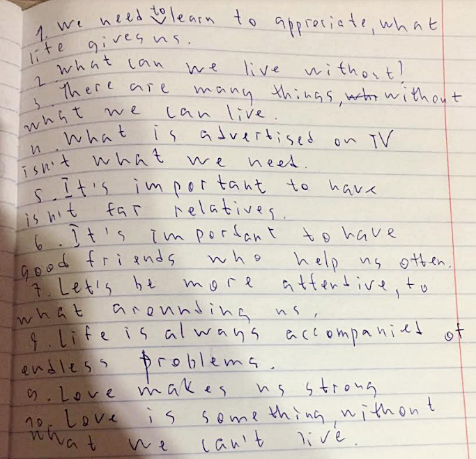 один из моих учеников, Вадим, 12 лет, перевел эти предложения с некоторыми ошибками. мы с Вадимом занимаемся 4 месяца, поэтому не судите строго. вы можете сделать это лучше?