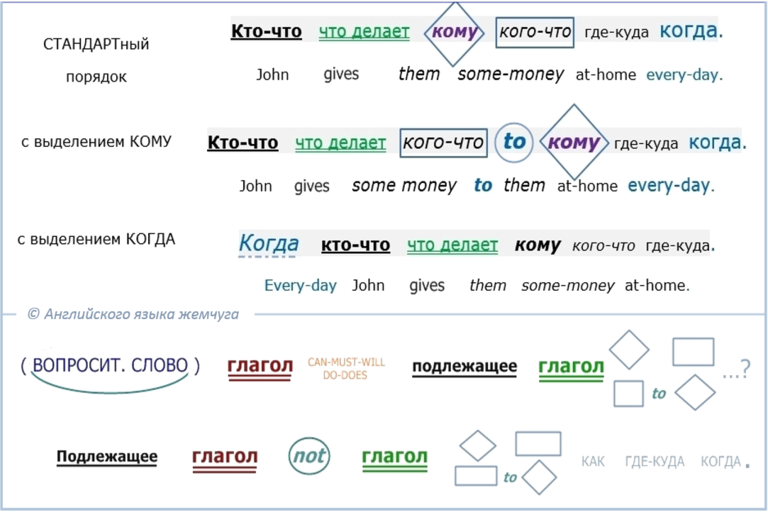 - этот порядок для русскоязычных сильно отличается от порядка для немцев, испанцев, итальянцев [а все крутые пособия пишутся под них].
